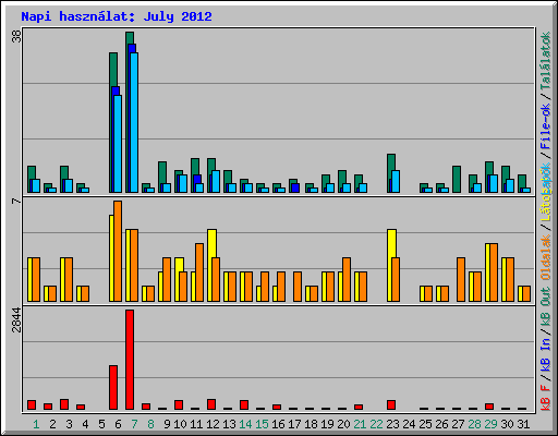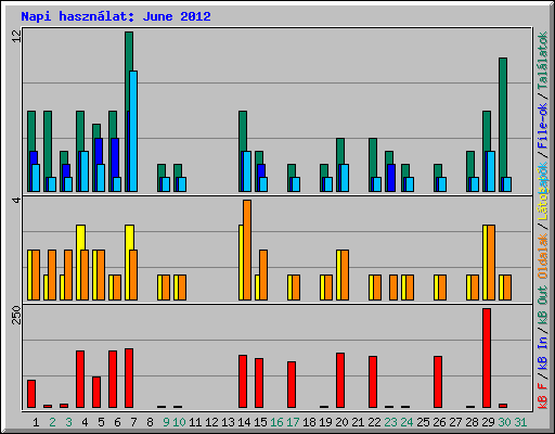 | Nap | Találatok | File-ok | Lapok | Látogatók | Oldalak | kB F | kB In | kB Out | ||||||||