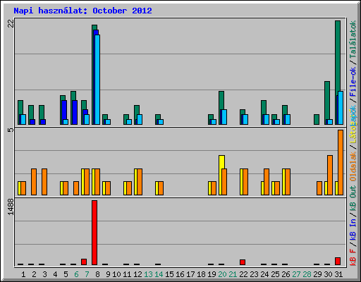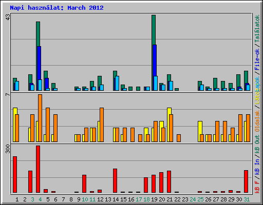 | Nap | Találatok | File-ok | Lapok | Látogatók | Oldalak | kB F | kB In | kB Out | ||||||||