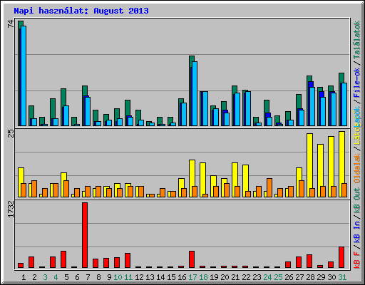 | Nap | Találatok | File-ok | Lapok | Látogatók | Oldalak | kB F | kB In | kB Out | ||||||||