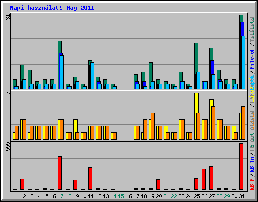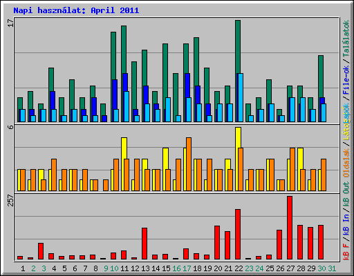 | Nap | Találatok | File-ok | Lapok | Látogatók | Oldalak | kB F | kB In | kB Out | ||||||||